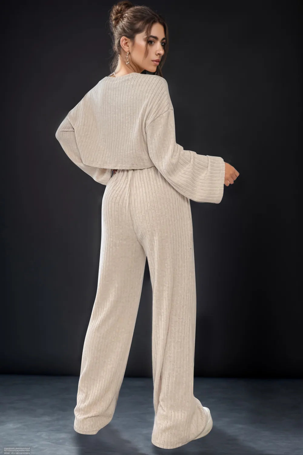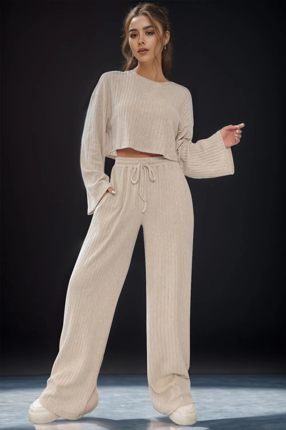 Round Neck Long Sleeve Top and Pants Set